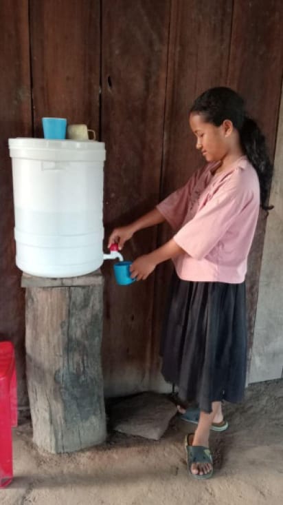- Providing ceramic filters and rainwater tanks so that families can have clean water.