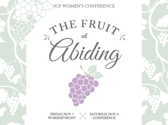Women’s Conference. The Fruit of Abiding. November 7 & 8. Worship night for the whole family on Friday and a special day for women only on Saturday.