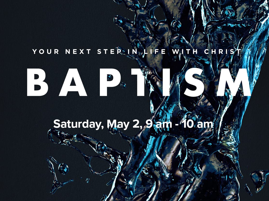 Baptism Class. Saturday, May 2, 9:00 am – 10:00 am. If you’ve got a child who is ready to be baptized, please bring them to this class for parents and kids. We will explain what baptism means and demonstrate its process using the baptism tank.